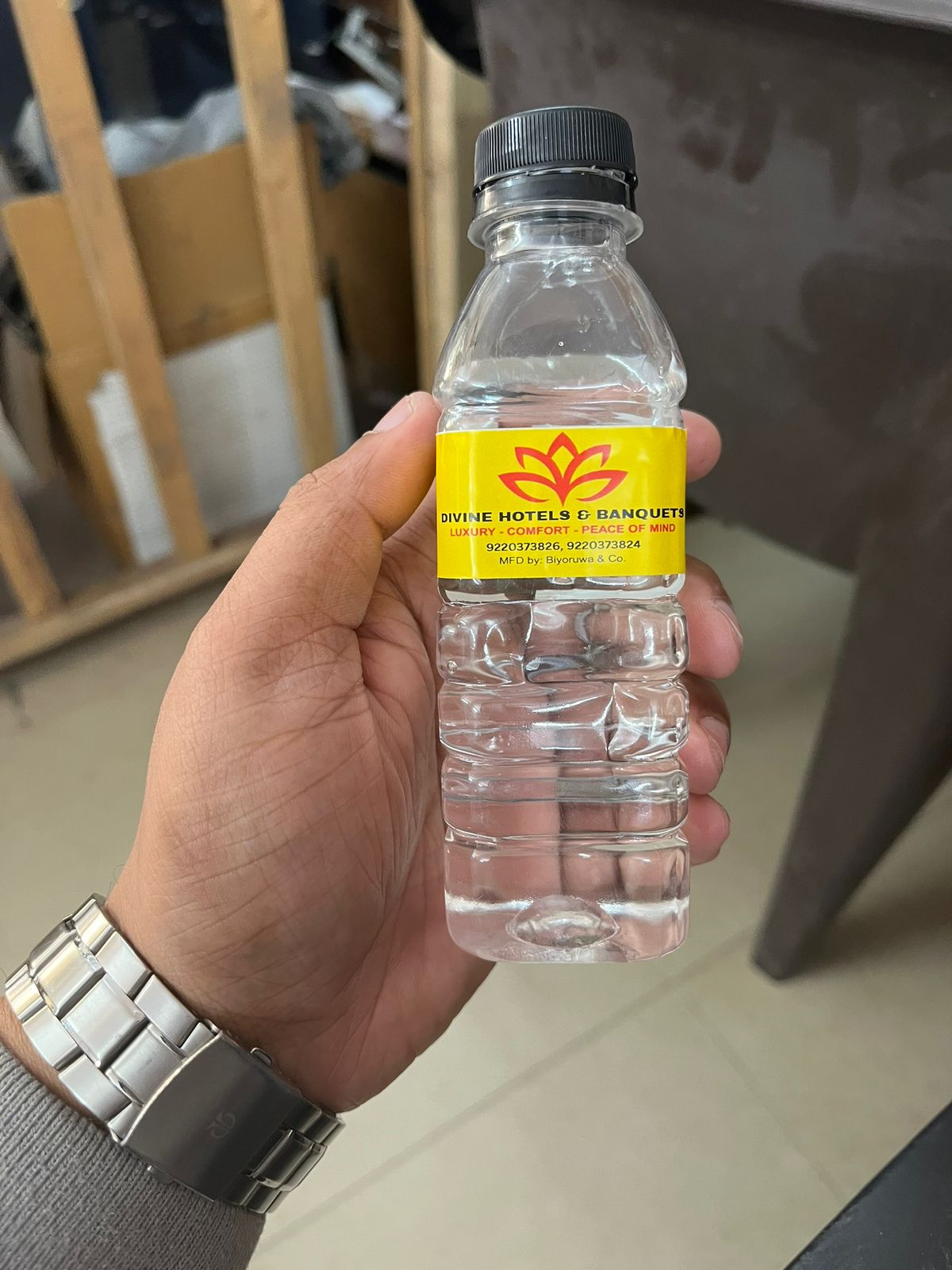 • Bottles of your brand name and logo.
